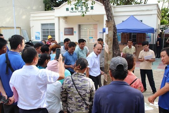 圖為保國分公司割膠技術員在樂東縣陳考村委會對膠農割膠技術現場測試。