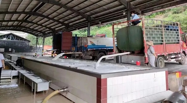 “收膠,一刻也不耽誤!”8月26日,在瓊中黎族苗族自治縣灣嶺鎮的一處橡膠收購點,膠農王志兵將剛收割的300余斤膠水倒入收購池中,看著工作人員如常計數、結算,他的臉上露出了笑容。在距該收膠點不遠的金石橡膠加工分公司,戴著口罩的工人消殺后進入廠房,將新鮮膠水卸下進行加工。