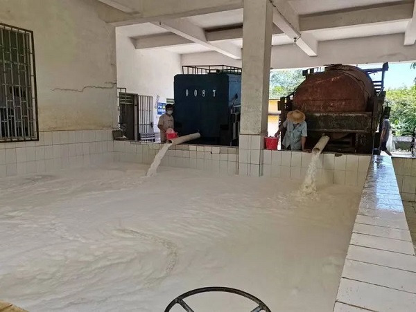 8月27日,是疫情發生以來西培分公司橡膠復割復產的第一天,符振瑤帶領西華派駐組全體員工一邊做好疫情防控工作,一邊狠抓干膠生產不放松。當日西華派駐組共完成干膠生產18.6噸。