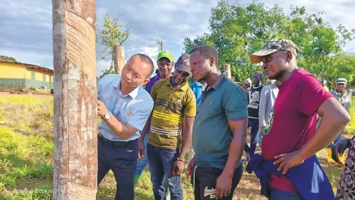 11月24日,瓊中黎族苗族自治縣黎母山鎮,海南天然橡膠產業集團股份有限公司(以下簡稱海南橡膠)陽江分公司組織人員開展橡膠冬春管理工作。