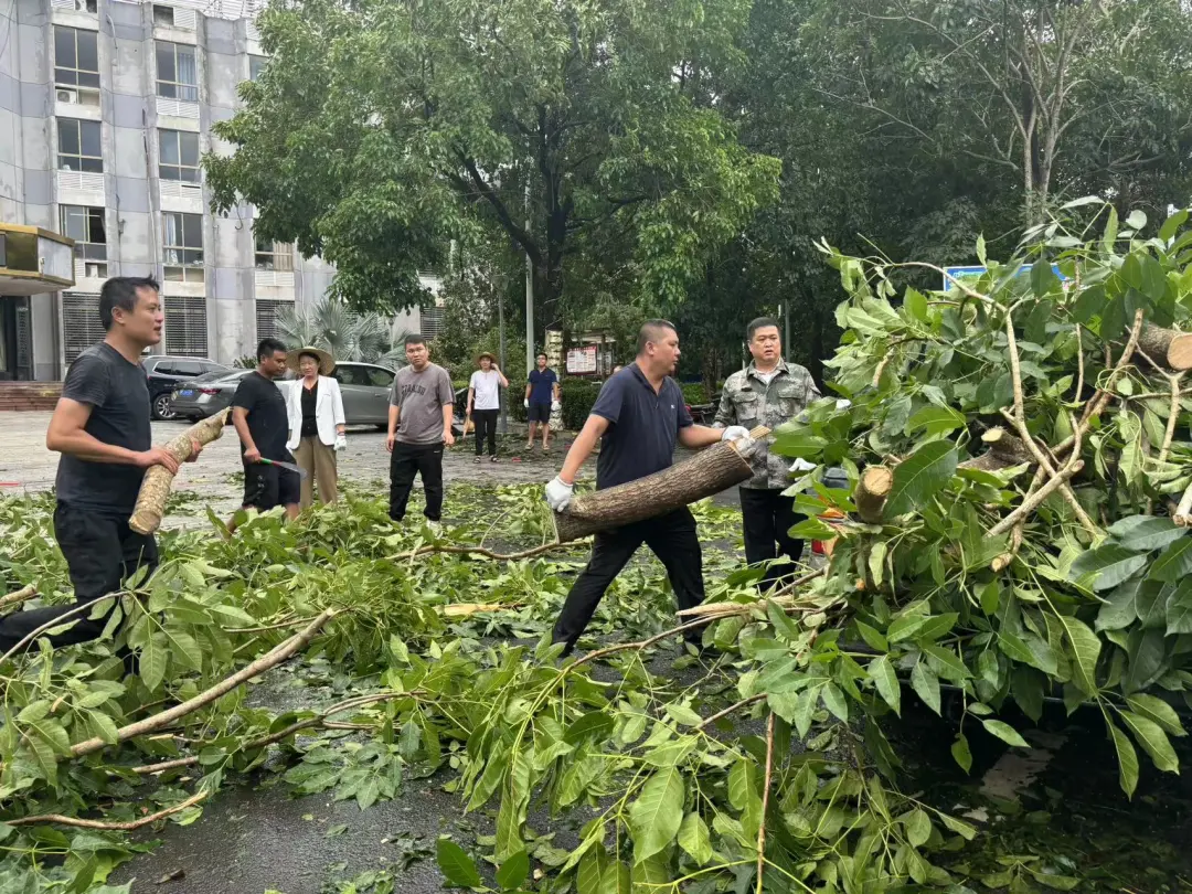 9月7日一大早,儋州市蘭洋鎮(zhèn),海南農(nóng)墾旅游集團有限公司和海南橡膠西聯(lián)分公司組織黨員干部在路面上,移走倒伏的大樹,清理斷枝殘葉。
