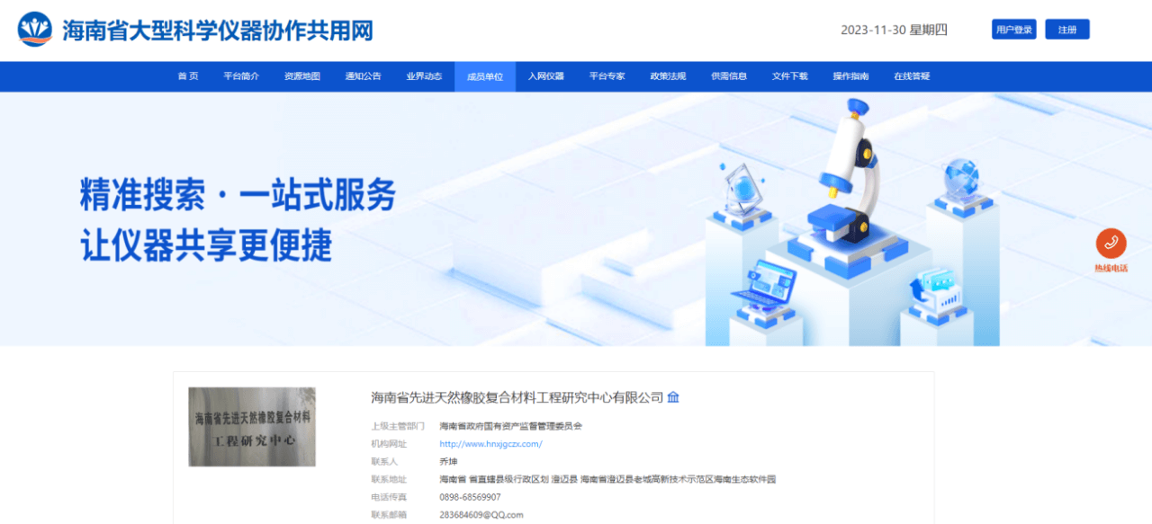 海南省先進天然橡膠復合材料工程研究中心獲批為大型科學儀器協作共用平臺