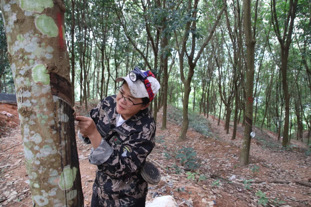 我是海膠集團(tuán)保國分公司13隊膠工曾湘湘,是農(nóng)墾第二代職工子女。2004年初,我回到生我養(yǎng)我的故鄉(xiāng),接過爸爸媽媽手中的膠刀成為一名割膠工人,從此就與橡膠樹結(jié)下了不解之緣。